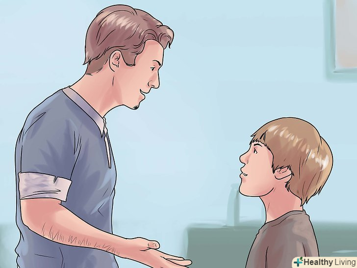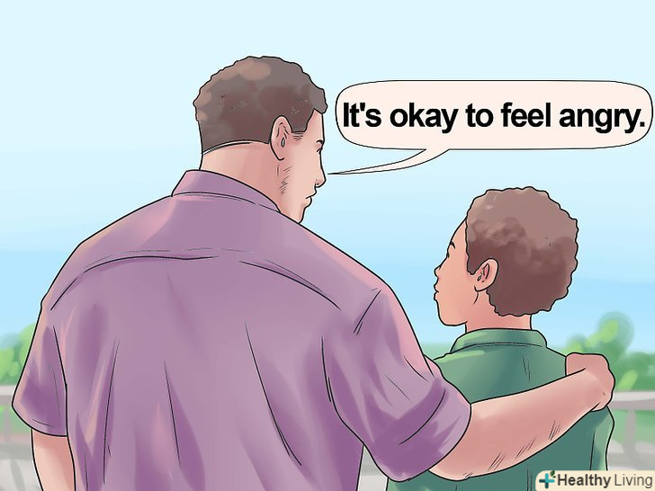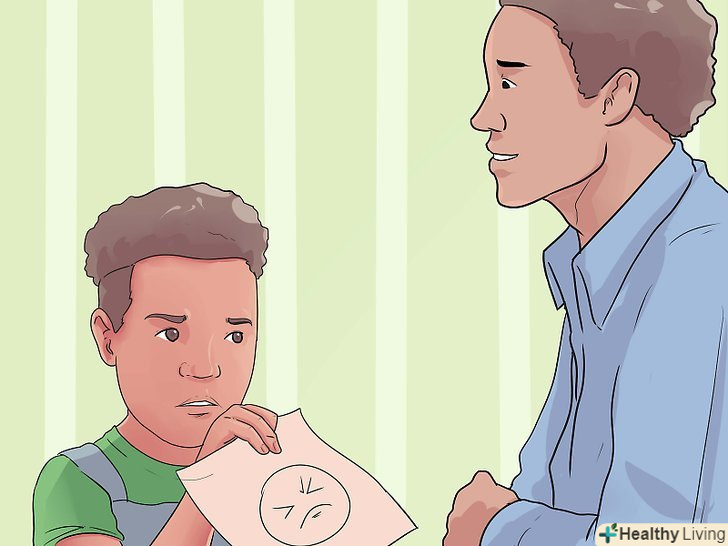 Запитайте дитину, що сталося. вкрай важливо зробити це, якщо не зрозуміло, що може бути причиною розладу. Навіть якщо ви знаєте причину, краще все одно попросити дитину сформулювати її своїми словами. Якщо у дитини буде можливість висловитися, йому буде простіше усвідомити свої емоції. [1]- Нехай дитина назве свої емоції — це допоможе йому дізнаватися їх в майбутньому.