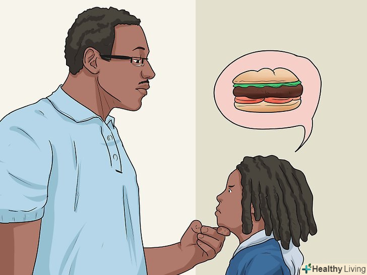 Пошукайте ознаки невдоволення або розлади. [9] важливо дізнаватися ознаки невдоволення або розлади у дитини, щоб навчити його висловлювати емоції словами. Завдяки цьому дитина сама стане розуміти, що він засмучений. Емоції можна висловлювати вербально або діями. Ось кілька ознак невдоволення:- Стиснуті кулаки