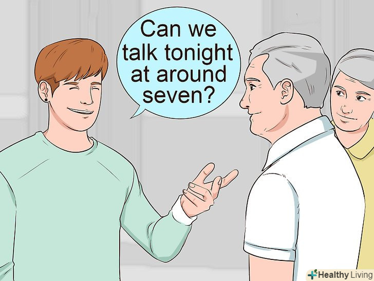 - Подумайте також про те, як ви хочете себе вести під час розмови з батьками. Прагніть бути чуйним, позитивним і добрим. [2]