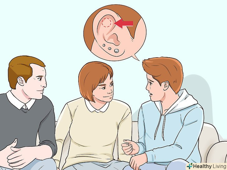 Розкажіть батькам про своє бажання і про його причини. Перегляньте свої нотатки та виберіть найбільш переконливий аргумент. Скажіть батькам, що вам дуже подобається ваш перший пірсинг і ви мрієте ще про одне. Покажіть батькам, що ви дуже їх поважаєте і вам важливо знати їх думку з цього питання.- Наприклад, можна сказати: "Мама і тато, пам'ятаєте, як в грудні минулого року я зробила пірсинг вух? Мені дуже хотілося б ще зробити пірсинг у верхній частині вушної раковини. Він виглядає так стильно! Крім того, він не вимагає особливого догляду. Однак я не можу це зробити без вашого дозволу. Що ви думаєте з цього приводу?»