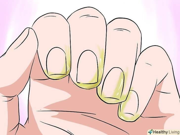 Зверніть увагу на жовті плями, що з'явилися на пальцях вашої дитини. пожовтіння зубів може проявитися через час, однак якщо підліток курить, на його пальцях і нігтях відразу ж з'являться жовті плями. [5]