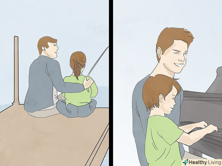 Знаходьте час для особистого спілкування з кожною дитиною. проводити час всією сім'єю дуже важливо, але не менш важливо приділяти увагу кожній дитині окремо. Така поведінка дозволяє зблизитися і налагодити спілкування, а також розвивати особисті якості і таланти всіх дітей.- Придумайте загальне хобі, щоб знайти підхід до кожної дитини. Наприклад, хлопчика можна брати на риболовлю по вихідних, а з дівчинкою разом грати на піаніно. Знаходьте час протягом тижня, щоб розвивати відносини з кожною дитиною. [3]