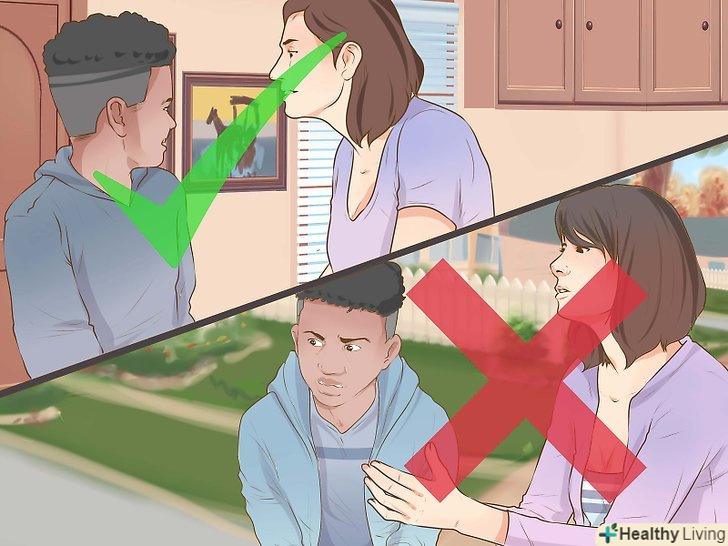Поводьтеся зріло. якщо ви вирішили не обговорювати проблему з батьками, то важливо чинити зріло. Не обходьте стороною проблеми, особливо що стосуються здоров'я або безпеки. Якщо ви хотіли поговорити з батьками про іншу людину, то говорите прямо і шанобливо. [23]