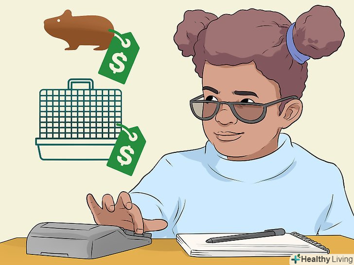 Розрахуйте бюджет для придбання хом'ячка. дізнайтеся, у скільки вам обійдеться покупка. Залежно від того місця, де ви проживаєте, а також від конкретного виду хом'ячка, сам вихованець буде коштувати приблизно від 50 до 300 рублів. Клітка для хом'ячка обійдеться в суму від декількох сотень до декількох тисяч рублів (в залежності від якості і розмірів). Супутні витрати на хом'ячка, включаючи придбання тирси для підстилки, корму і бігового колеса складуть ще близько 500-1000 рублів. [5]- Один із способів продемонструвати свою цілеспрямованість завести вихованця — постаратися повністю або частково накопичити необхідну суму на відповідні витрати, щоб батькам не довелося за все платити. Для цього економте кишенькові гроші або спробуйте допомагати батькам по дому за певну плату.