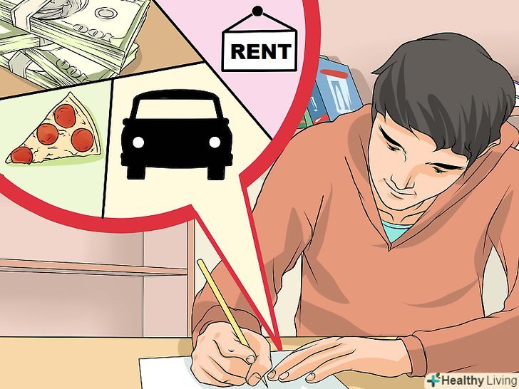 Розрахуйте бюджет. проведіть необхідні розрахунки бюджету і запишіть результат на папері. Крім підрахунку того, скільки грошей вам знадобиться на такі необхідні речі, як оплата оренди, опалення і так далі, постарайтеся внести в бюджет і інші пункти (менш необхідні, але теж важливі). Наприклад, спробуйте підрахувати, скільки грошей на місяць ви витрачаєте на різного роду розваги. Любите ходити в кіно? Не забудьте відзначити це у фінансовому плані. [2]- Підрахуйте, скільки грошей Ви заробляєте. Якщо у вас немає стабільного доходу, спробуйте при підрахунку бюджету взяти за основу той мінімум, який ви завжди зможете заробити. Ви ж не хочете залишитися без грошей. [3]