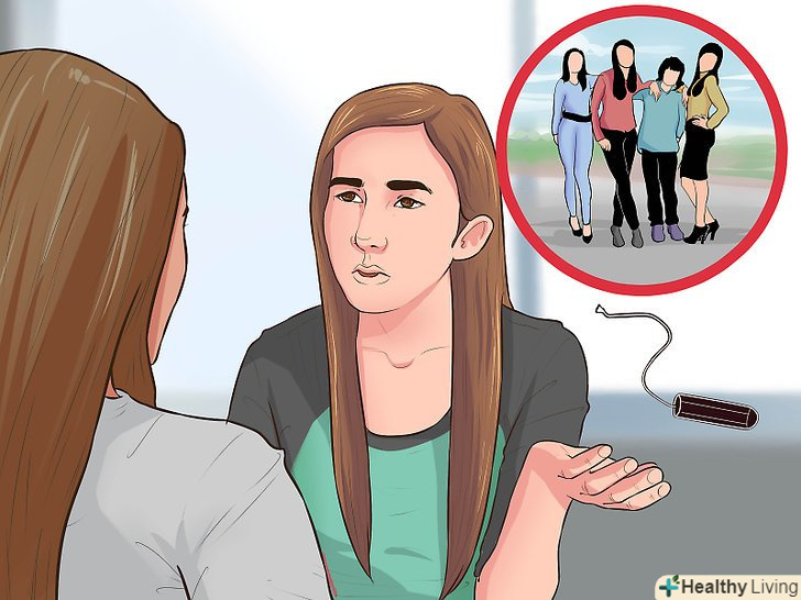 Розкажіть про те, що ваші ровесниці вже користуються тампонами. розкажіть про своїх подруг, які знаходяться в такій же ситуації, як і Ви (вони такого ж віку, теж займаються спортом). Поясніть, що вони користуються тампонами і відчувають себе прекрасно.- Якщо ви відчуваєте себе білою вороною, тому що ви не можете користуватися тампонами, поясніть це своїм батькам.