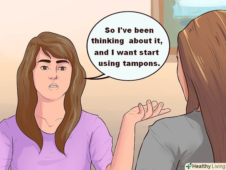 Багато дівчат соромляться розмовляти з мамою про такі речі, як тампони. Подолайте свій страх запитати у батьків щодо тампонів, правильно підготувавшись до цієї розмови. Будьте ласкаві і ввічливі, коли просите дозволу, і не нийте, якщо батьки вам відмовлять.