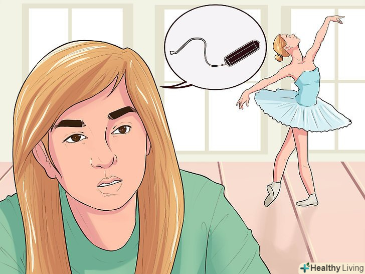 Поясніть, в яких ситуаціях вам потрібні тампони. Причина такої популярності тампонів на ринку в тому, що вони необхідні при активному ритмі життя. Якщо ви займаєтеся таким спортом, як плавання, то фактично вам не дозволяється плавати в басейні під час менструації, щоб не забруднити воду і не заразитися інфекцією. Але при заняттях іншими видами спорту тампон буде відмінним рішенням.- Що стосується інших ситуацій, то тампон буде дуже до речі, якщо ви носите тісний облягаючий одяг, якщо вам доводиться переодягатися в загальній роздягальні, а також якщо ви просто цінуєте почуття комфорту.