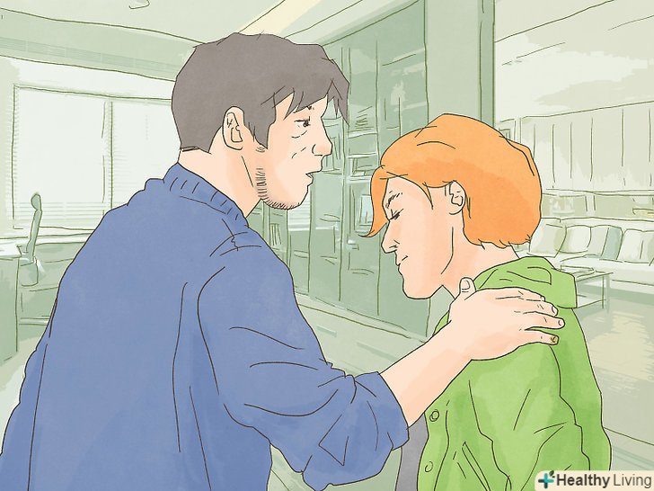 Дійте в кризових ситуаціях. якщо ви вважаєте, що підлітку загрожує небезпека, то не потрібно зволікати. Всі розмови або погрози вчинити самогубство або заподіяти шкоду іншим слід приймати всерйоз. Негайно зверніться за допомогою: зателефонуйте в службу екстреної допомоги , відвезіть підлітка в відділення невідкладної допомоги і зв'яжіться з психотерапевтом. [17]- Якщо ви розгубилися, то зателефонуйте в службу екстреної допомоги і дізнайтеся, як потрібно вчинити. Вам можуть запропонувати привезти підлітка у відділення невідкладної допомоги або уважно спостерігати за ним.