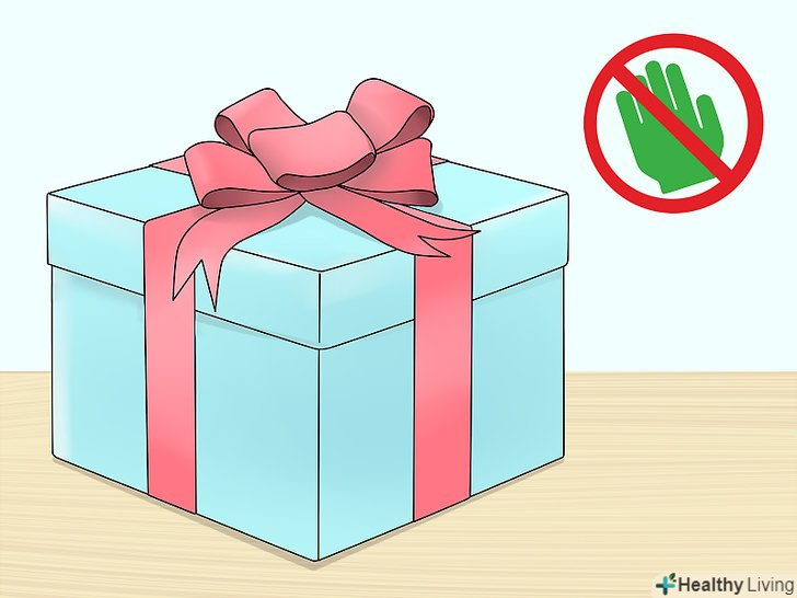 Не потрібно чіпати загорнуті предмети. незалежно від того, наскільки ретельно ви спробуєте їх знову обернути, ви не зможете зробити так, щоб вони виглядали недоторканими. Якщо ви не впевнені, чи варто оглядати який-небудь предмет, дотримуйтесь кроків, перерахованих нижче:- Видаливши скотч, швидше за все, ви пошкодите обгортковий папір, залишивши доказ того, що ви намагалися відкрити цей предмет. Тому скотч краще не чіпати;