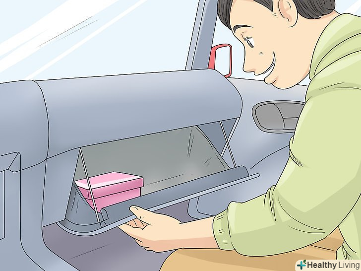 Огляньте автомобіль. якщо ви не користуєтеся автомобілем, це автоматично робить його ідеальним місцем для того, щоб заховати там якусь річ. Після поїздки на автомобілі Прикиньтеся, що залишили там щось і швиденько поверніться і огляньте все. В автомобілі багато місць, куди можна заховати речі, тому варто заглянути в найтиповіші.- Бардачок – це найочевидніше місце, куди можна щось заховати. Якщо ви шукаєте щось маленьке (наприклад, ключі або пульт дистанційного керування), обов'язково загляньте в бардачок.