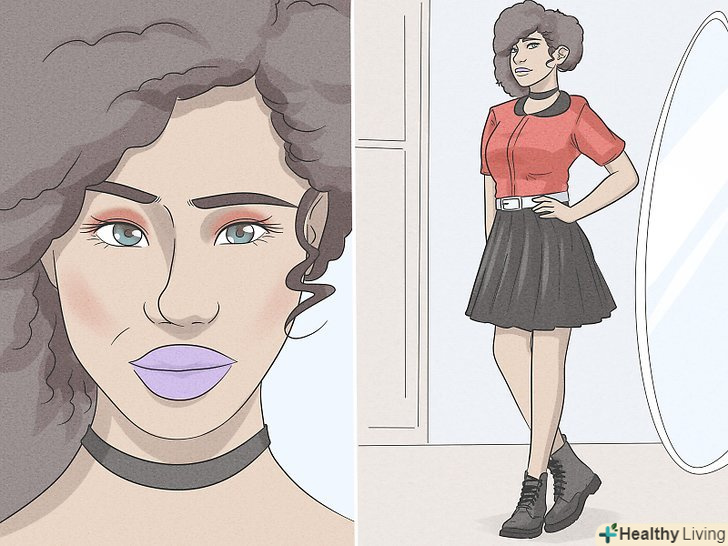 - Для дівчат, які хочуть виділятися в якості порушниці правил і бунтарки, спрацює образ з асиметричними стрижками і яскравим макіяжем. Яскрава червона помада, темний макіяж очей і великі бутси під сукню в стилі лялечки. Покладіть в куртку кілька шпильок-і ви готові до панк-шоу.