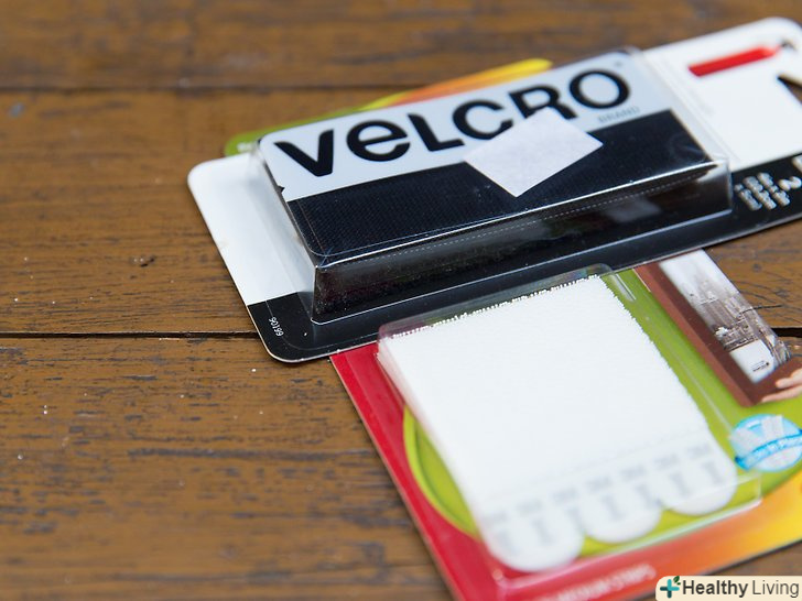 Приліпити липучки до тильної сторони рамки. знайдіть ті місця рамки, які будуть впритул прилягати до стіни, а потім прикріпіть до них липучки, знявши захисний шар і придавивши клейкою стороною до рамки на кілька секунд. Розмістіть, як мінімум, по одній липучці в обох верхніх кутах рамки, а потім додайте ще липучок, якщо перших двох недостатньо для утримання ваги рамки.- Якщо у рамки є петелька для підвішування до стіни, яка виступає за поверхню тильного боку самої рамки, не забудьте її зняти.