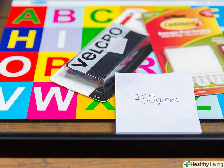 Зважте постер в рамці. такі липучки мають обмеження по вазі, який вони здатні витримати. Ці обмеження повинні бути вказані на упаковці, тому потрібно зважити постер для визначення кількості необхідних до використання липучок (при вазі постера близько 1 кг цілком можна скористатися для цього домашніми вагами).