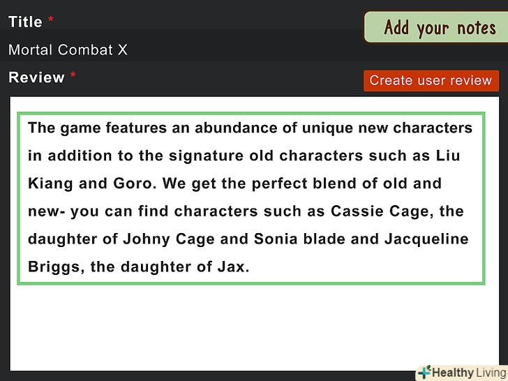 Додайте зібрані вами нотатки про гру.після введення починається, власне, сам огляд. Запишіть і додайте зібрані вами раніше замітки.