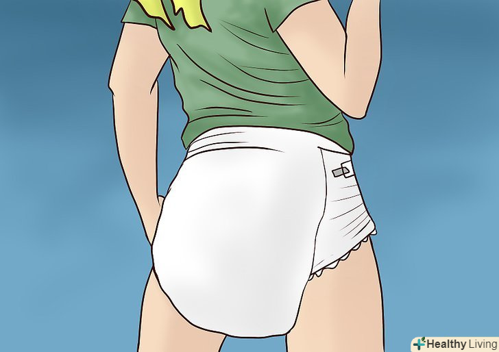 Носіть підгузник. виберіть одноразові підгузники, якщо ви не можете носити памперси з липучками у вашому віці. Найкраще вибрати підгузники з милими героями, підгузники у вигляді трусів можуть продаватися у відділі по догляду за особистою гігієною в супермаркетах. Якщо ви досі влазите в підгузники у вигляді трусів, купіть їх собі. Незважаючи на гроші і розміри, дитячі підгузники у вигляді трусів єдині підгузники, на яких зображені химерні герої. .- Ганчіркові підгузники найбільш ефективні, це робить їх більш вигідними, особливо якщо ви і не особливо збираєтеся ними користуватися.