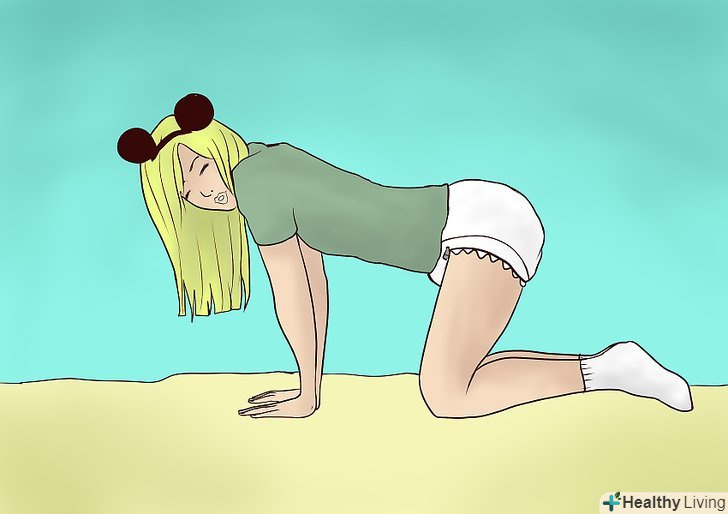 Повзайте навколо або ходите нерішучими кроками. малюки не бігають і не ходять великими кроками, вони повзають і ходять дуже нерішуче, зазвичай спираючись на що-небудь при цьому. Замість цього, обхопіть свої коліна руками і бігайте навколо як ніби ви досі не вмієте ходити.- Іноді діти теж можуть бігати: спочатку вони встають і висувають ноги прямо вперед, а потім відставляють їх назад і повільно рухаються вперед. Дуже весело дивитися на все це з боку, і це дуже хороший спосіб вести себе як дитина.