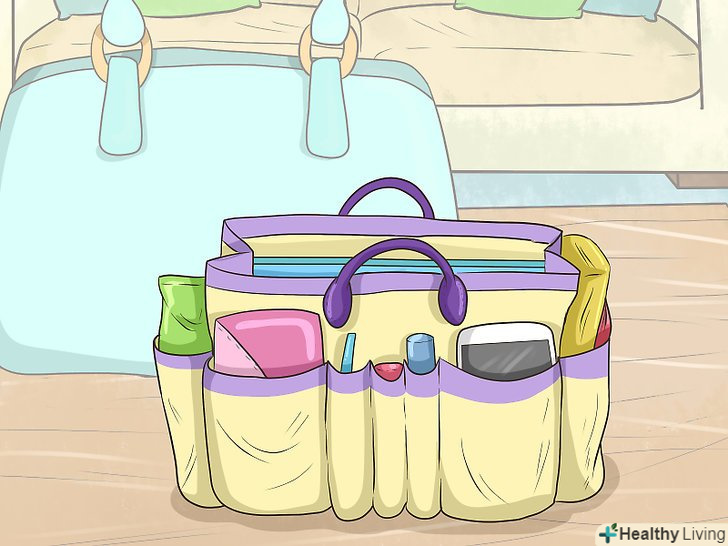Якщо вам потрібно періодично міняти сумки, користуйтеся органайзером для сумок. Органайзер для сумки по суті являє собою сумку в сумці, наповнену корисними речами; його можна поміщати всередину сумок більшого розміру. Це дуже корисний предмет для тих сумок, у яких немає своїх внутрішніх відділень; також він допомагає легко міняти сумки одну на іншу, так як заповнений органайзер без праці можна перекласти в необхідну Вам сумку. [9]- Замовте органайзер через Інтернет або придбайте його в супермаркеті.