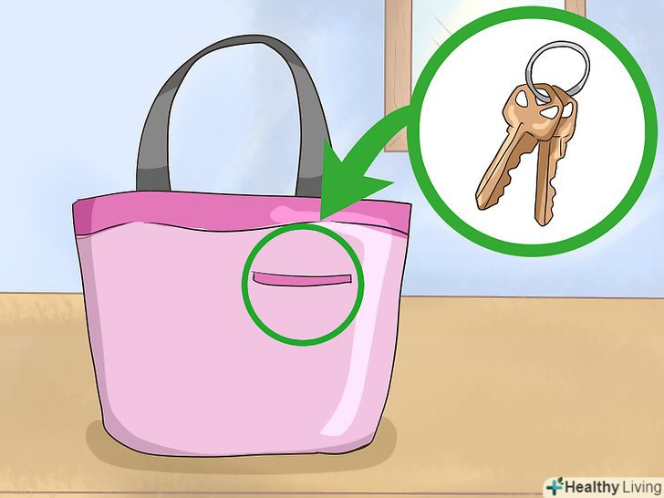 Покладіть ключі в невелику надійну бічну кишеню. навіть велика зв'язка ключів може загубитися всередині дамської сумочки! Щоб уникати постійних пошуків, кладіть ключі в надійний маленький кишеню всередині або зовні сумки. До зв'язки ключів можна прикріпити брелок або навіть два, щоб вам було простіше їх знайти. [3]- Якщо ви вирішили класти ключі в зовнішній бічний кишеню, він обов'язково повинен застібатися на блискавку, щоб ключі не випали або не були вкрадені.