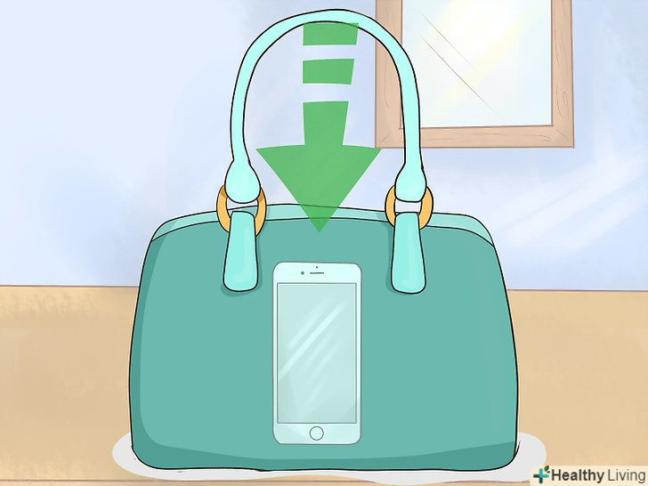 Покладіть телефон в менше за розміром відділення сумочки, де він не зможе загубитися. у невеликій сумочці стільниковий телефон може прекрасно вписатися в основне відділення разом з гаманцем. Якщо у вас сумка середнього або навіть великого розміру, ймовірно, ви захочете покласти телефон в маленьке відділення сумки, в якому його буде простіше знайти. Незалежно від обраного вами місця, переконайтеся в тому, що в разі дзвінка або СМС його можна буде дістати без особливих зусиль. [4]- Якщо ви віддаєте перевагу також носити з собою навушники для телефону, відключіть їх, скрутіть дроти і застебніть затискачем, щоб вони не заплуталися.