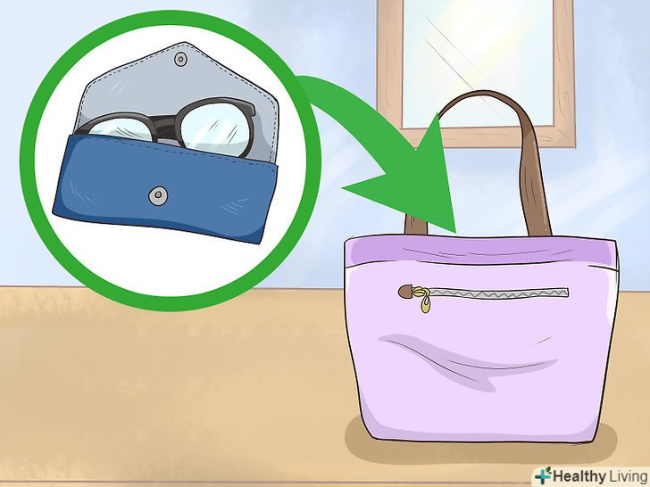У літній час тримайте в основному відділенні сумки сонячні окуляри, поклавши їх у футляр. сонячні окуляри можуть погнутися і подряпатися в сумці, але вони однозначно будуть важливим засобом захисту від яскравого сонячного світла. Щоб оберегти окуляри від пошкоджень, помістіть їх у футляр і акуратно покладіть в основне відділення сумки.- Також вам слід використовувати футляр для будь-яких інших окулярів, якими Ви користуєтеся.