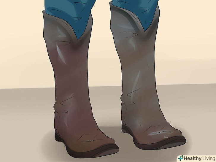 Постарайтеся знайти Класне взуття. наприклад, можна носити взуття з відкритими носком і мати при собі пару гумових чобіт на випадок, якщо потрібно буде пройтися або попрацювати де-небудь.- Можете знімати чоботи, якщо є можливість; босі ноги теж відповідають стилю кантрі.