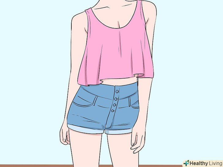 Підкресліть свої найкращі риси. носіть одяг, який йде вашій фігурі і привертає увагу до ваших кращих рис, в той же час маскуючи ті, якими ви не дуже задоволені.- Якщо у вас широка талія або мінімальні вигини, підкресліть вашу природну лінію талії поясом або топом з затягуванням на талії. Цей прийом також допоможе, якщо ви хочете приховати великі стегна. Привертаючи увагу до талії, ви акцентуйте вигини вашої фігури і врівноважуєте загальний вигляд.