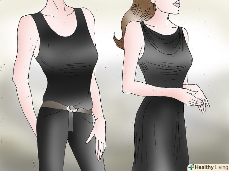 Носіть чорний одяг. майже завжди, коли ви бачите Анджеліну поза домом, вона в чорному. Що б ви не робили, не носіть пастельних тонів. Вона так ніколи не робить. Ви можете побачити її в кольорових сукнях на врученнях нагород, але чорний є базисним кольором.- Визначтеся, якому періоду життя Анджеліни ви хочете відповідати. Вона відома тим, що любила змінювати свій стиль. У 1991 році вона носила черевики з металевими вставками і ходила виключно в чорному, проте зараз її стиль набагато м'якше, але вона досі любить чорний.