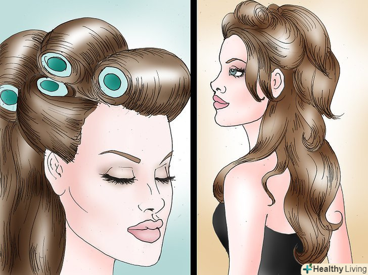 - Зніміть бігуді, починаючи зверху. Зберіть волосся на маківці. Використовуйте круглу гребінець, щоб начесать їх. Скористайтеся лаком для волосся. Те ж саме зробіть з волоссям в передній частині голови. Коли лак підсохне, розчешіть волосся.