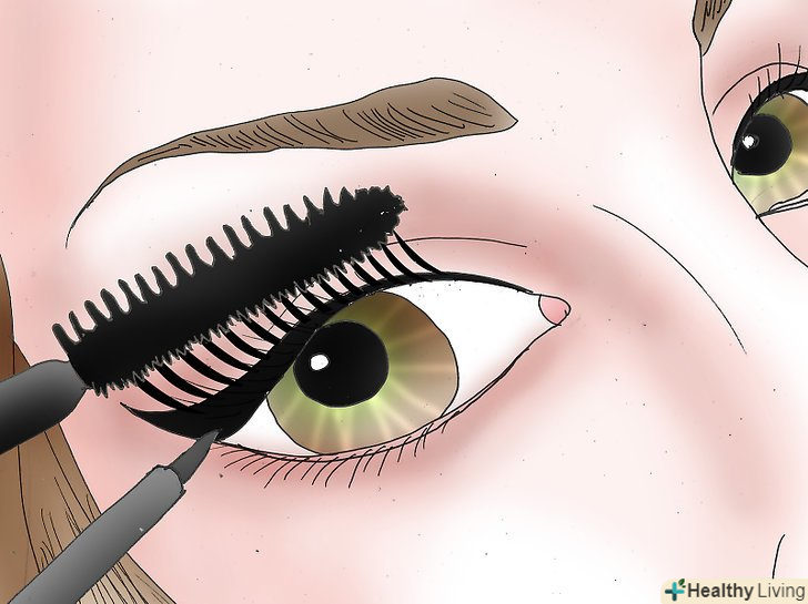 Використовуйте туш і рідку підводку. вона майже завжди використовує туш і рідку підводку для очей. Це частина її щоденного макіяжу.- У Анджеліни довгі вії. Можливо буде потрібно нанести два шари подовжує туші, щоб отримати вії як у неї. Можете наклеїти вії, але не перестарайтеся. [11]