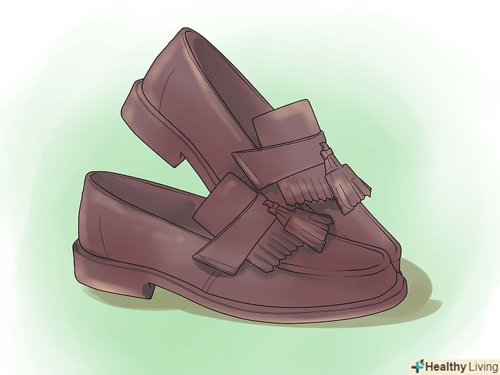 Знайдіть відповідні туфлі. спробуйте приміряти взуття чорного або коричневого кольору. Ви також можете надіти і кеди. Знайдіть кеди яскравого кольору, наприклад, червоного, синього, зеленого або фіолетового.