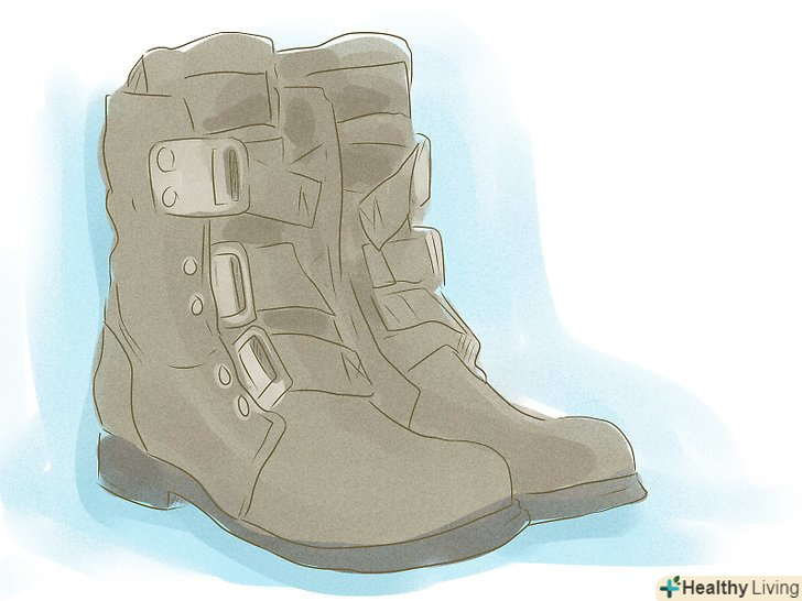 Знайдіть армійські черевики. Гранжери носять в основному армійські черевики і кеди. Зокрема, дуже популярні черевики фірми Doc Martens. Якщо ви знайдете пару таких черевиків в комісіонці, то вважайте, що вам крупно пощастило. [4]