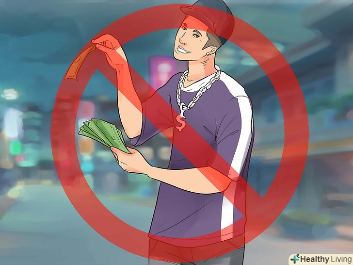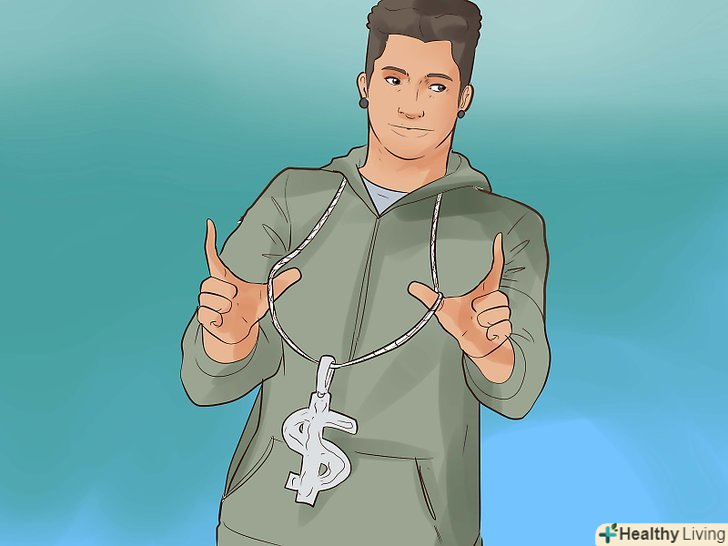 Аксесуари. носіть біжутерію, наприклад, довгі ланцюжки, годинник, сережки, або грілзи. Якщо ви можете собі це дозволити, носіть дизайнерські пояси, такі як Gucci, Fendi, Hermes або Louis Vuitton. Ви також можете носити деякі великі ланцюги, але не перестарайтеся. Правильно підібрані золотий годинник створюють набагато більше враження, ніж мільйон ланцюгів.- Будь-які золоті або срібні прикраси будуть виглядати добре, якщо вони високої якості.
