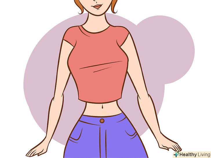 - Носіть обрізані футболки. Спробуйте поєднувати джинси із завищеною талією з обрізаною футболкою, майкою, кардиганом. Обтягуючі футболки (на 2-3 розміри менше) були також модними серед жінок.