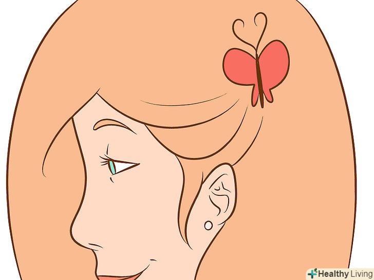- Прикріпіть шпильки-метелики на волосся. Ці маленькі пластикові шпильки різних кольорів були дуже популярні серед дівчаток різного віку. Для модного образу необхідно було зібрати волосся з чола назад і закріпити кожне пасмо шпилькою-метеликом. Виходило так, ніби на голові залишився ободок з метеликів.