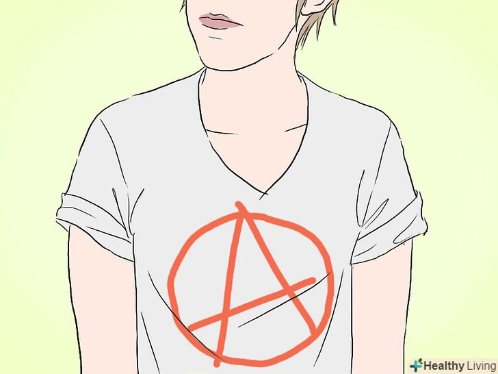 Купуйте одяг. нескладно виглядати як слід. Просто переконайтеся, що у вас є футболки панк-груп, джинси і поношена шкіряна куртка.- Не витрачайте занадто багато грошей ні на що. Шкіряні куртки можуть коштувати дорого, тому купіть поношену.
