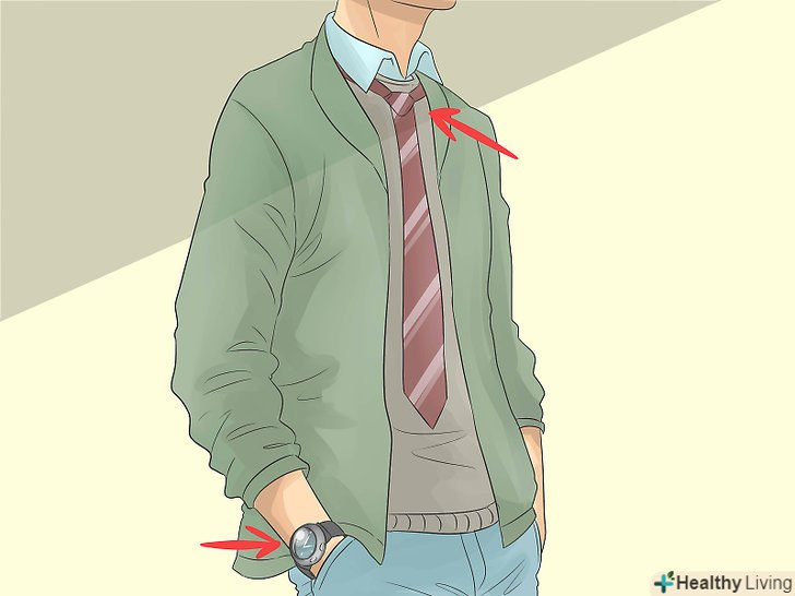 Підбирайте одяг відповідно до своєї статури. ви ж хочете виглядати добре і відчувати себе комфортно і впевнено? Наприклад, вам може бути найзручніше в одязі стилю кежуал: светр, джинси і черевики. А може, ви хочете виглядати стильно і віддаєте перевагу класичні сорочки і штани чінос. Незалежно від того, який стиль вам подобається, обов'язково вибирайте тільки той одяг, яка добре на вас сидить.- У кожного з нас є свої особливості зовнішності, тому будь-які дрібниці, візерунки, вирізи і навіть марки одягу зможуть зіграти вам на користь. Зазвичай тонкі вертикальні лінії роблять фігуру візуально стрункішою, а в одязі з широкими горизонтальними смугами ви будете виглядати кремезним. Візерунки візуально вкорочують фігуру, а облягаючі сорочки і штани підкреслять форми вашого тіла.