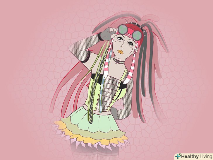 Пошукайте в Інтернеті "cyberlox", якщо вам це цікаво. такі дреди можуть коштувати досить дорого, проте виглядають дуже добре, якщо правильно їх підібрати. Постарайтеся вибрати Більш товсті і мають насичений колір , а краще ультрафіолетові. Навіть якщо ви не можете знайти дреди, які підходять вам за ціною, ви можете легко знайти дешеві матеріали для того, щоб зробити дреди самостійно (піна, пряжа, штучне волосся). Коли одягаєте їх, то варто носити пов'язку, щоб покрити голову, і тим самим зменшити тиск на шкіру голови від ваги дредів.