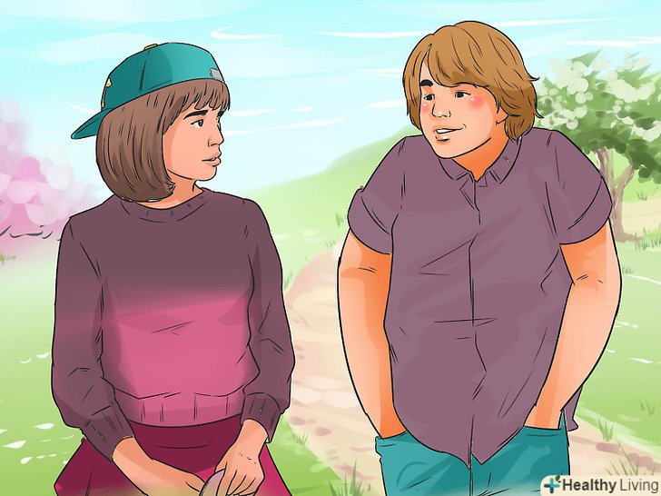 Подивіться на його реакцію, коли він бачить вас з іншим хлопцем. якщо ви бачите, що це зачіпає або засмучує його, то, швидше за все, ви йому подобаєтеся. Поспостерігайте за його реакцією, коли ви будете розмовляти з іншим хлопцем. [14]- Не намагайтеся викликати його ревнощі – ви можете відлякати його своєю поведінкою.
