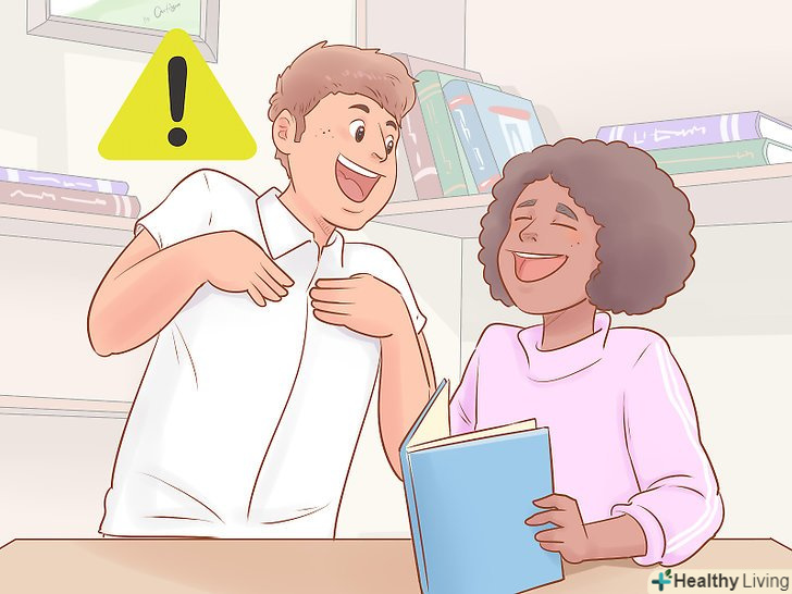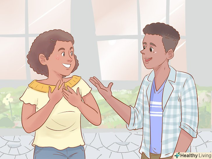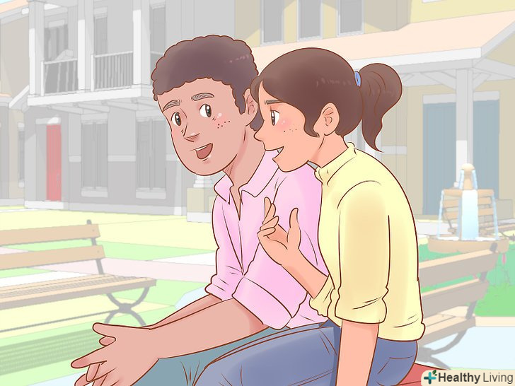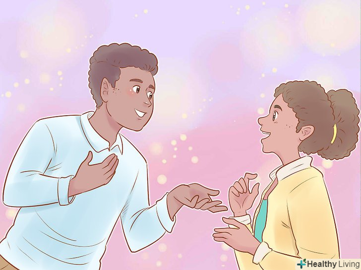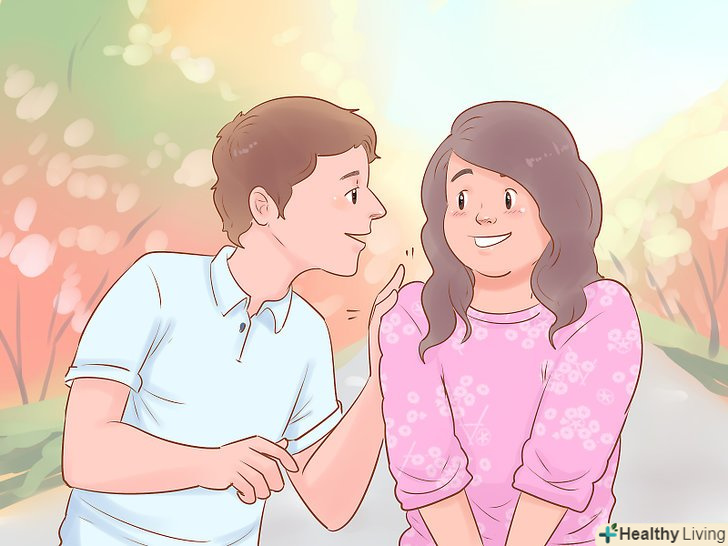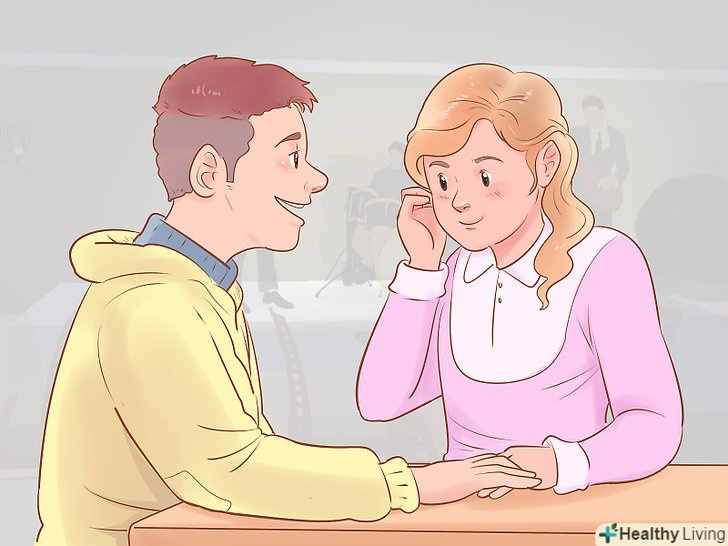 Посміхайтеся, коли вона знаходиться поруч. просто посміхнувшись, ви відчуєте себе більш невимушено в присутності дівчини, яка Вам подобається. Крім того, це дійсно може підняти вам настрій. Завдяки посмішці активуються гормони щастя, організм розслабляється, а серцебиття сповільнюється. [2]- Посмішка також діє на людей на підсвідомому рівні, підвищуючи ймовірність того, що вони Посміхнуться у відповідь.