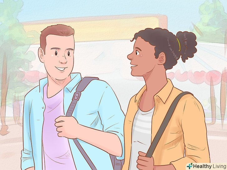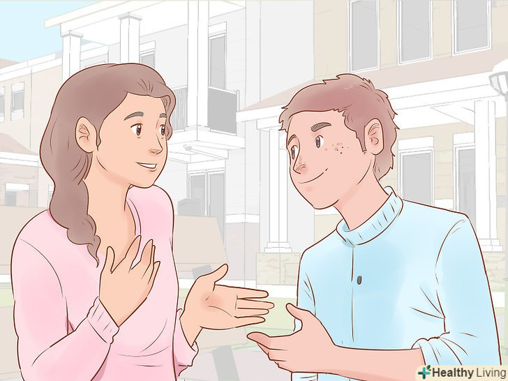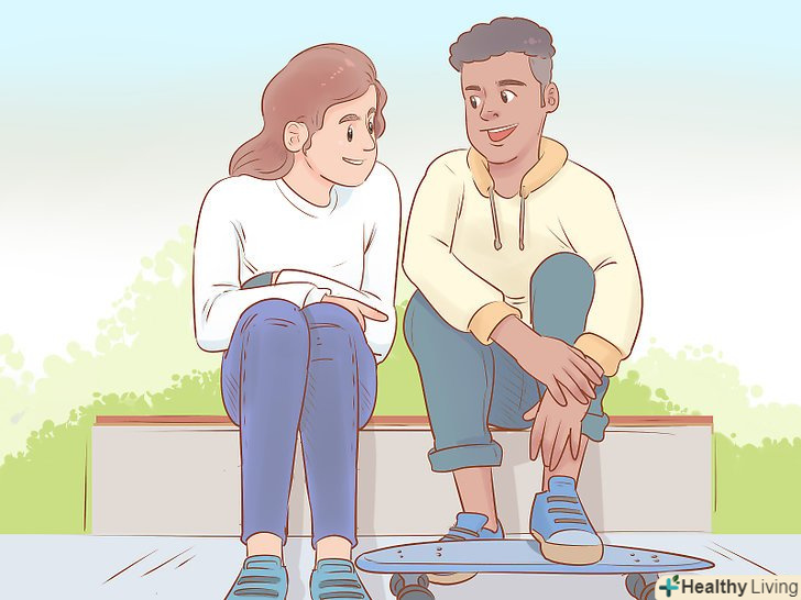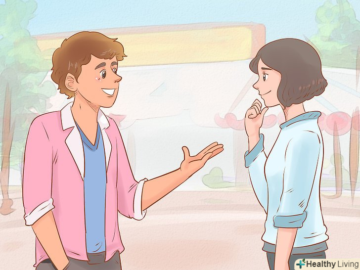 Представтеся, якщо ви ще не знайомі. це покаже їй, що Ви впевнені в собі і що вона вам подобається. Можливо, буде трохи страшно бути тим, хто першим розтопить лід , однак зробіть кілька глибоких вдихів і пам'ятайте, що ви повинні поговорити з нею, якщо хочете, щоб вона коли-небудь стала вашою дівчиною. [5]- Спробуйте задати їй питання або попросити надати вам невелику послугу, щоб зав'язати розмову. Наприклад, якщо ви перебуваєте на уроці, можна сказати що-небудь на кшталт: «Привіт, я Антон. У тебе є запасний олівець?»