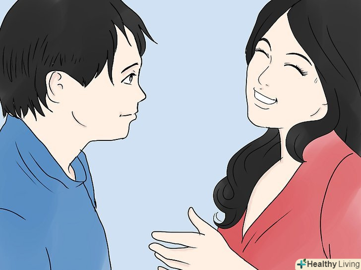 Розсмішіть його. часто ключ до серця людини лежить через його почуття гумору. Існує вираз, що " пара, яка сміється разом, залишається разом. "Якщо ви змусите його сміятися над тим, що ви говорите, йому більше сподобається ваша компанія, і він захоче проводити з вами більше часу.- Хороший спосіб досягти цього – згадати щось трохи незручне або принизливе, що трапилося з вами. Згадайте той випадок, коли ви сплутали незнайомця з вашою кращою подругою і шльопнули його по попі або як по дорозі на побачення ви не помітили сходинку в автобусі і випали з дверей на очах у всіх. Це покаже, що ви не ставитеся до себе занадто серйозно і можете посміятися над собою.
