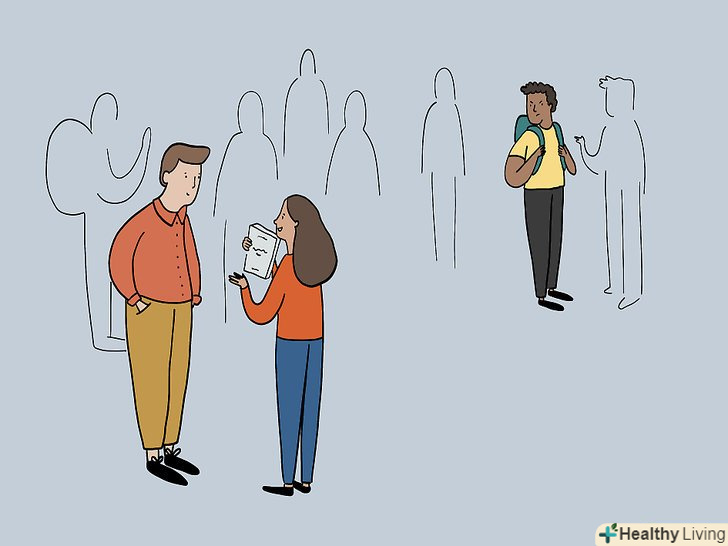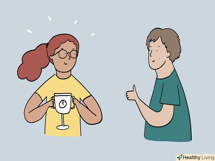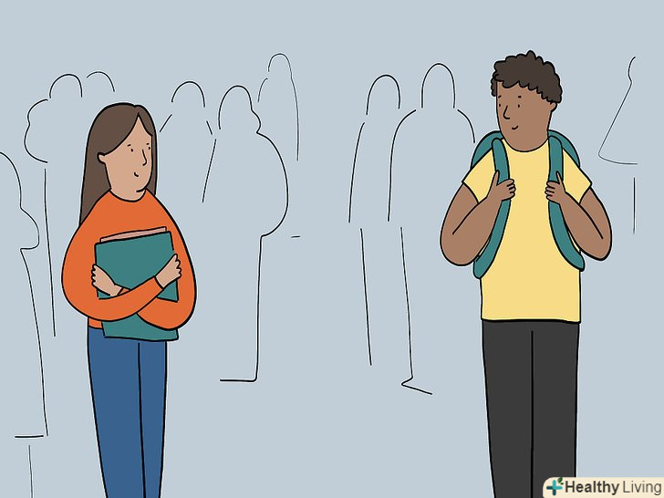 Хлопець посміхається вам. Якщо ви помітили, що він дивиться на вас, погляньте йому в очі і злегка посміхніться. Відповідна посмішка або кумедний погляд напевно виявляться ознакою симпатії. При цьому можна навіть беззвучно вимовити йому " припини!"або" ти дивний", щоб побачити, чи буде він сміятися у відповідь або що-небудь говорити.- Якщо ви готові трохи пофліртувати, погляньте на хлопця, потім відведіть свій погляд і знову подивіться на нього з посмішкою.