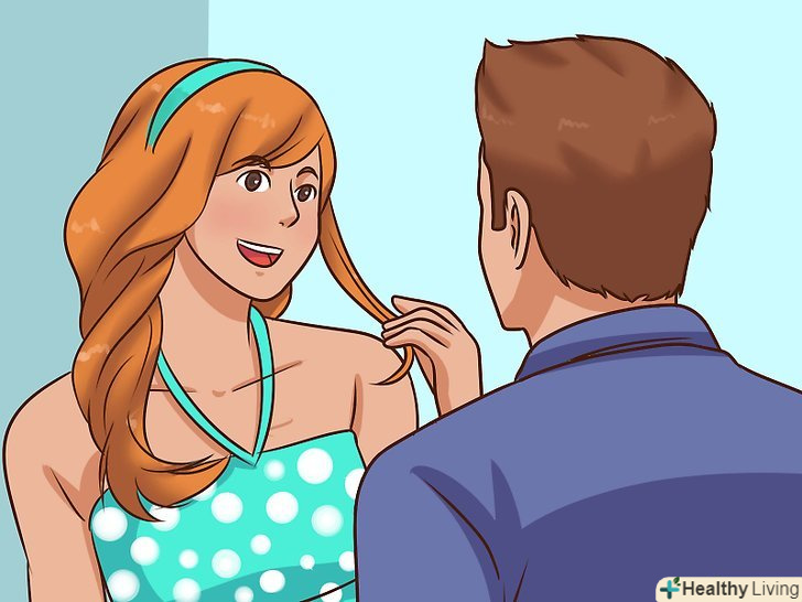 - Робіть їй компліменти з приводу її волосся, одягу або посмішки. Знову ж таки, не показуйте занадто явно, що вона вам подобається. Дівчатам люблять, коли їм роблять компліменти. І якщо вона вже загравала з вами, тоді у відповідь зробіть їй комплімент, наприклад: «Вау, у тебе дійсно гарні очі», — або: «у тебе таке гарне волосся».