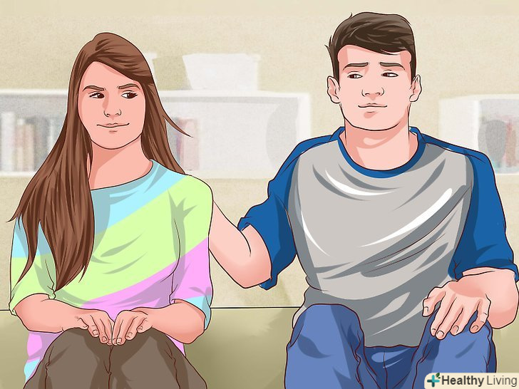 Торкайтеся як би ненароком. якщо ви сядете поруч зі своїм предметом обожнювання і ваші ноги стикнуться, зверніть увагу, чи було це швидке зіткнення або він ненадовго затримав ногу. Якщо він продовжує до вас торкатися, можливо, ви йому цікаві, а значить, можна злегка загострити обстановку, продовжуючи легкі торкання. Наприклад, якщо ваші шафки в школі знаходяться поруч, ви можете торкнутися його руки, коли обидва будете закривати дверцята. [13]- Не переходьте на новий рівень, поки ваш коханий не почне відповідати взаємністю або затримуватися при випадковому торканні