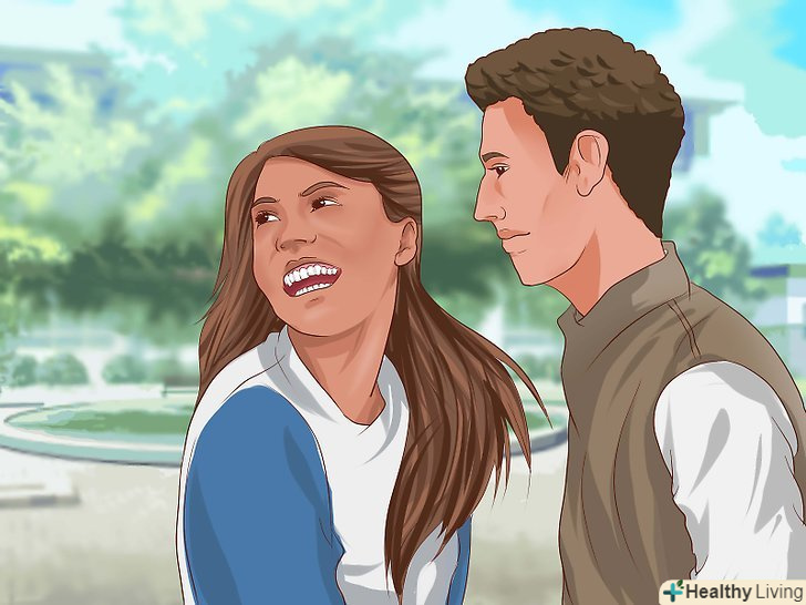 ПосміхайтесяІ смійтеся. щасливе обличчя допоможе вам виглядати відкритою до спілкування, доброзичливою і веселою. А адже саме так ви хочете виглядати, якщо мрієте про те, щоб предмет обожнювання звернув на вас увагу і підійшов до вас. Відсутність посмішки на вашому обличчі може змусити молоду людину подумати, що ви не зацікавлені в ньому або навіть вороже налаштовані. [3]- В одному з досліджень 60% чоловіків описали фотографію жінки без посмішки як "сумну/меланхолійну", а 66% жінок вважали її "нудьгуючою/байдужою".