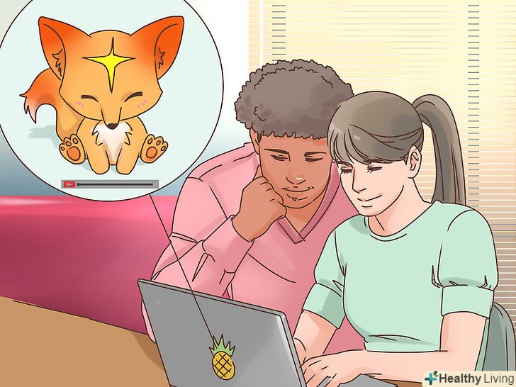 Покажіть їй що-небудь. як тільки ви обидва сядете на ліжко або диван, покажіть їй щось цікаве, наприклад, свій щоденник, щорічний альбом, свої улюблені книги або музику, смішні відео і картинки на комп'ютері. Якщо ви будете щось дивитися або розмовляти про щось, сидячи на ліжку, атмосфера поступово стане менш напруженою, і вам незабаром стане абсолютно комфортно.- Скажіть щось на кшталт: "ти дивилася відео на YouTube про лисицю?", а потім відкрийте це відео на своєму комп'ютері / планшеті.