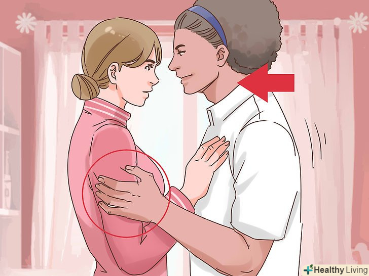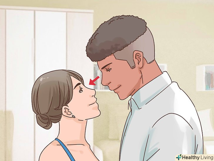 Поважайте її межі. якщо дівчина не хоче цілуватися, просто ніжно покладіть руки їй на талію або мило проведіть долонею по її щоці. Якщо вона позитивно відреагує на цей жест, рухайтеся далі. Якщо дівчина почне чинити опір, якщо вона відкриває очі і закриває рот, краще зупинитися і просто зайнятися чимось іншим. [7]