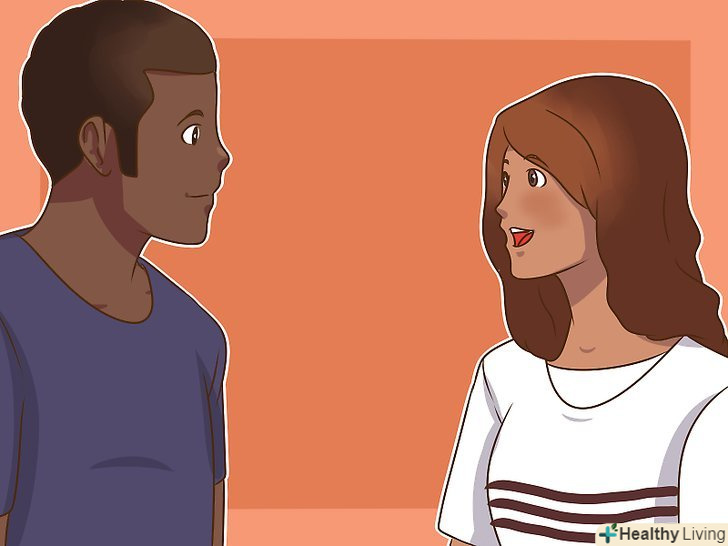 Розмовляйте з ним!- Після того, як прочитаєте останній крок, ви можете почати хвилюватися при думці про розмову з ним. Але не хвилюйтеся: просто не будьте балакучі! Якщо ви не скажете йому ні слова, він може подумати, що зробив щось не так, або що ви дуже скуті. Просте " Привіт!"у коридорі може привернути його увагу. Або можете вітально махнути рукою, коли зустрінете його в торговому центрі. Намагайтеся зав'язати бесіду про що-небудь реальному, наприклад, як дивно або смішно повівся ваш учитель біології, і, може бути, вам вдасться створити жарт, яка буде зрозуміла лише вам двом!