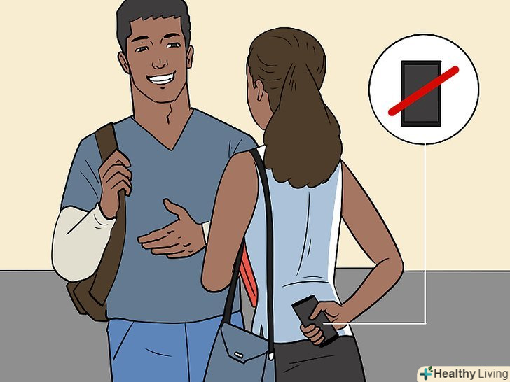 Щоб не виглядати так, немов вам немає до нього ніякого діла, відкладіть телефон в сторону. можливо, з телефоном в руках вам і буде більш комфортно в компанії хлопця, але в такій ситуації краще б прибрати його подалі — в кишеню або сумку. Адже ваша увага-це ознака того, що ви берете участь в тому, що відбувається навколо, а не відволікаєтеся на сторонні фактори. [14]- Цілком нормально на секунду-дві відволіктися і подивитися в телефон, але намагайтеся тримати його подалі, якщо ви не користуєтеся ним в даний момент.